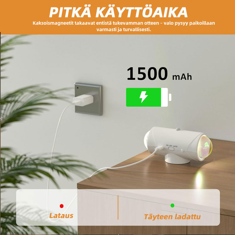 Mit einem eingebauten 1500 mAh Lithium-Akku und einer stromsparenden LED-Lichtquelle von nur 0,2W leuchtet sie bis zu 1 Monate mit einer Ladung.