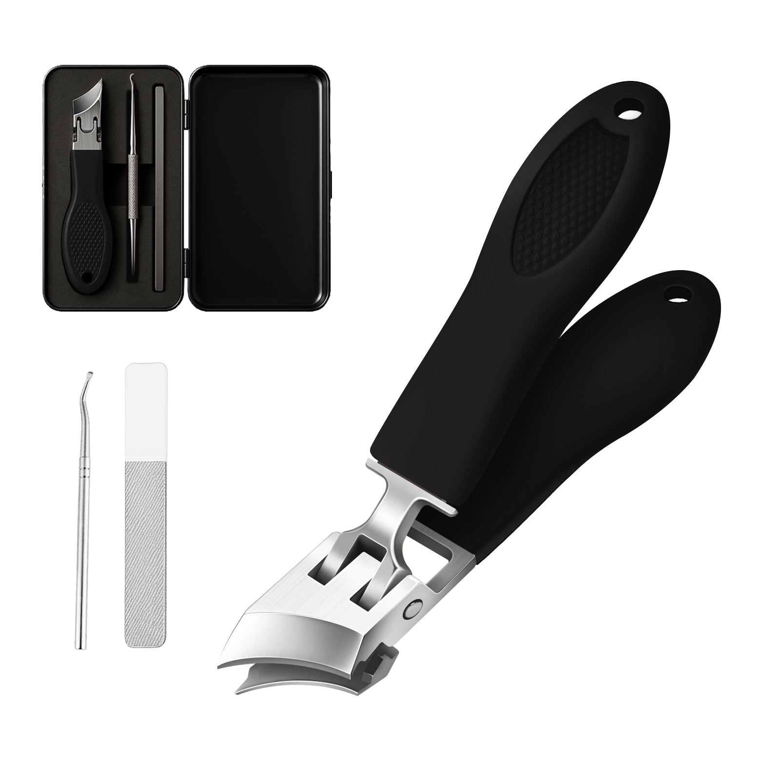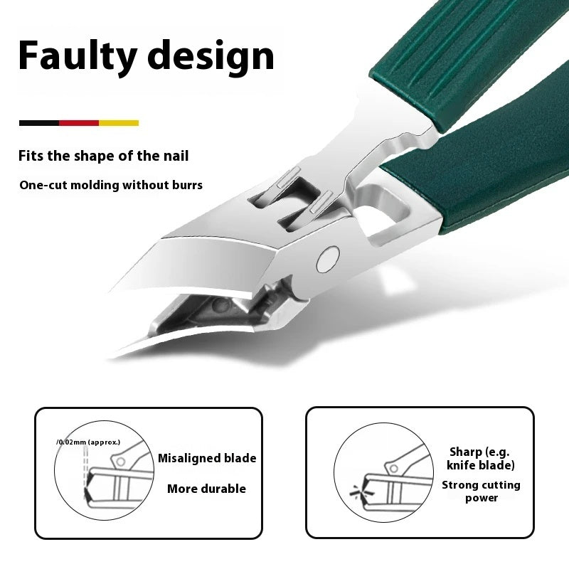 Dank der breiten Öffnung bewältigt dieses Instrument mühelos unterschiedliche Nageldicken – von empfindlichen Nägeln bis hin zu dicken Fußnägeln. Der ergonomische PVC-Griff bietet einen rutschfesten, komfortablen Halt, sodass Sie sicher und bequem schneiden können.